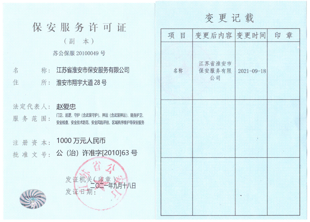 保安服务许可证