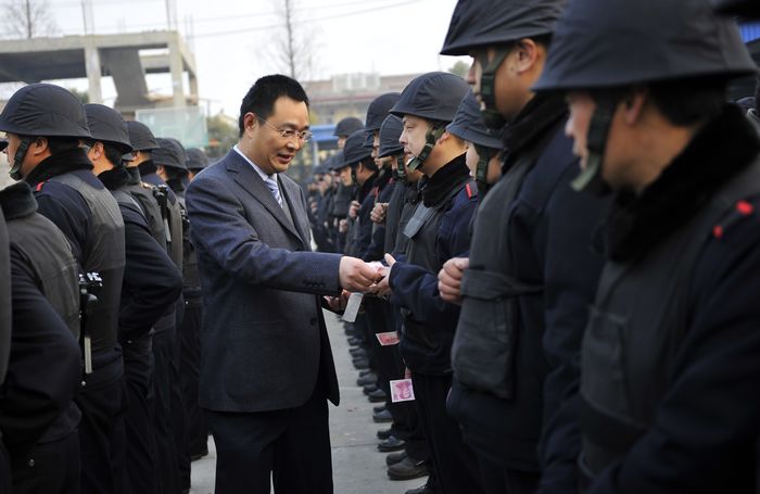 2月3日大年初一上午,市公安局党委委员、副局长、纪委书记初晓在公司总经理娄伯翱、副总经理王克、徐文刚的陪同下,亲切慰问了总公司武装押运员并发放了慰问金。初书记代表市局党委向大家拜年并致以节日的问候和祝福!