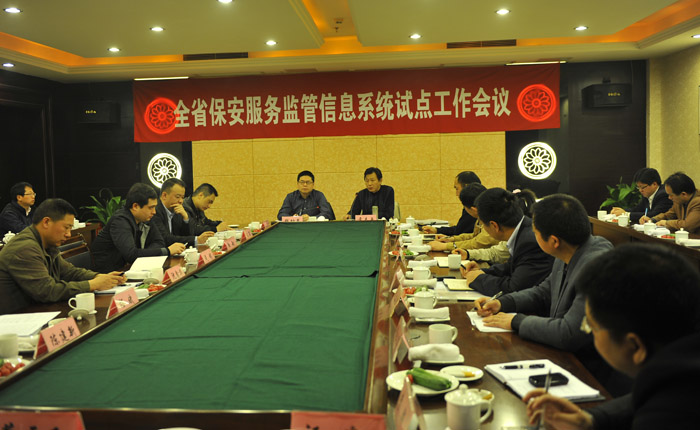 会议上,与会人员观摩了保安服务监管信息系统操作演示,并围绕有关工作进行了讨论,省厅治安局贲志平副局长出席会议并作出重要讲话。