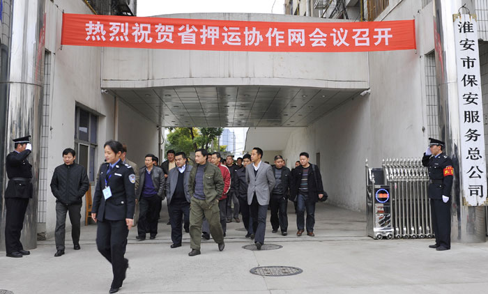 2011年11月30日至12月1日,江苏省押运协作网第五次会议在淮安召开,淮安市公安局初晓副局长致欢迎词,来自南京、无锡、苏州、镇江、常州、南通、泰州、扬州、徐州、连云港、盐城、宿迁、淮安等全省十三个市的保安(押运)公司总经理和分管领导40余人参加了会议。省公安厅治安局贲志平副局长、省公安厅保安监管科钱幼菁科长、淮安市公安局治安支队刘砚明政委以及保安监管科领导应邀出席会议。