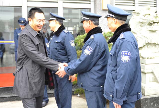 然后,在保安人防管理中心总监王锦春陪同下,娄伯翱总经理慰问了驻市市财政局、职业技术学校、顺泰包装等人防执勤点以及物管公司、银盾驾校、犬防基地;副总经理王克和徐文刚分别驱车慰问驻山东、南京山东等驻外保安员。当天下午,总经理娄伯翱将赴浙江慰问驻外保安员。
