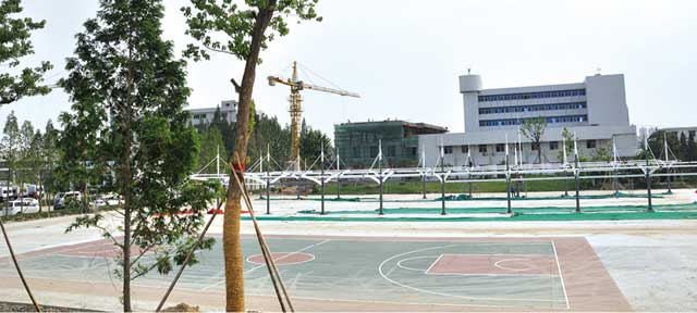 建设中的办公楼和停车场一角
