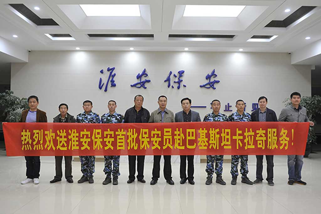 2016年4月16日,江苏省淮安市保安服务总公司精心选派的张伟、武晓杰、刘军、王殿善4名保安员由上海机场飞至巴基斯坦卡拉奇执行海外安保服务。这是淮安保安公司自2015年11月向巴基斯坦卡拉奇派驻6名工程类安全员之后又一次派驻海外安保服务。