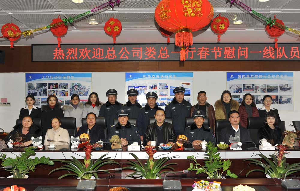 月异日新鸡报晓,年祥岁吉犬开门。在声声的鞭炮声中,狗年悄然而至,2月16日大年初一早晨7时20分,总经理娄伯翱、副总经理王克、徐文刚以及公司党总支委员一起慰问了整装待发的武装押运员。