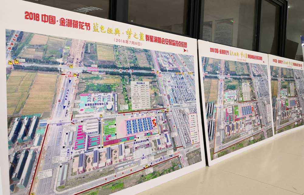 由于本次晚会在新建场地金湖县吴运铎实验学校运动场举办,各类可参考系数少,加之进入梅雨季节,不可控自然因数多等,为保障晚会的顺利进行,7月5日下午,娄伯翱总经理带领各参战部门主要负责人在金湖县吴运铎实验学校安保指挥部召开了安保工作现场协调会,要求所有参战人员思想上高度重视,积极承担主体责任,合理部署保安力量和机动处置力量备勤,确保晚会做到让主办方满意,让公安监管放心,让现场观众安心。