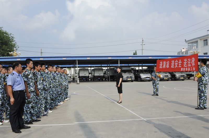 7月28日下午,淮安市总工会领导深入公司训练场,慰问正在酷暑下训练的校园特卫人员,并为他们送来了饮料和毛巾等防暑用品,总工会慰问组一行充分肯定了特卫人员在加强全市校园安全防范工作中所作出的成绩,并勉励特卫人员进一步加强训练,努力提高素质,为打造平安校园作出更大的贡献。