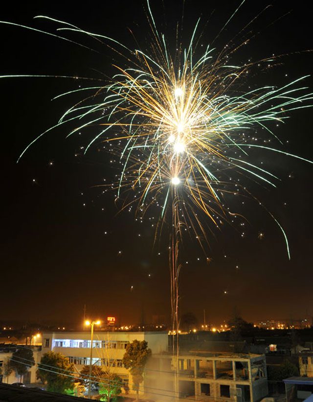 除夕夜 总公司院内绽放朵朵璀璨烟花喜迎兔年