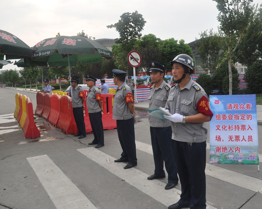 200名执勤保安员在晚会当日下午13:00,按照指挥部的统一部署分配到各执勤岗位。按照指挥部的执勤要求,全体队员克服高温天气的影响,认真履行岗位职责,大部分队员衣服全部被汗水淋透了,他们仍然坚守岗位。在整个执勤当期,7检票口的同志共查出假票40余张,收缴假工作证件50余件,阻止无票、无证人员进入现场800余人次,另外还配合当地公安执勤民警收缴各类危险品400余件,有效防止各类隐患事故的发生。