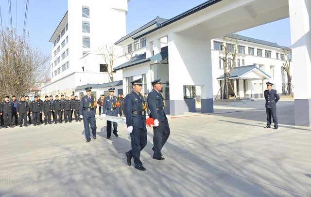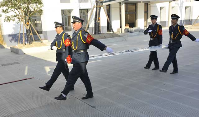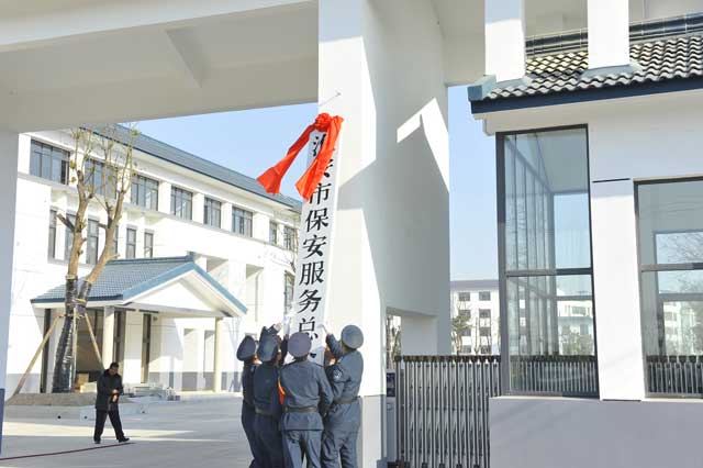 虽然室外气温格外寒冷,但这里却充满了春天的气息。上午9时50分,4名礼仪保安抬着一块披着红绸的标牌, 迈着整齐的步伐走向公司大门,9时58分,江苏省淮安市保安服务总公司标牌缓缓地、平稳地挂了起来,现场响起阵阵鞭炮声和热烈的掌声,大家共同为总公司新址挂牌而欢欣鼓舞。