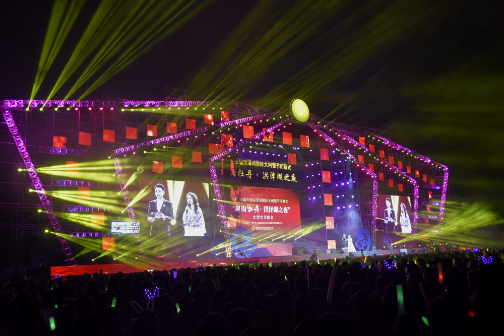 2018年10月28日晚,第十三届中国洪泽湖国际大闸蟹节闭幕式文艺晚会在洪泽区外国语中学体育场举行,晚会邀请了罗志祥、张韶涵、阿杜、温岚等名星登台演出,有12000余名观众进场观看,总公司承担了文艺晚会的整体安保工作。
