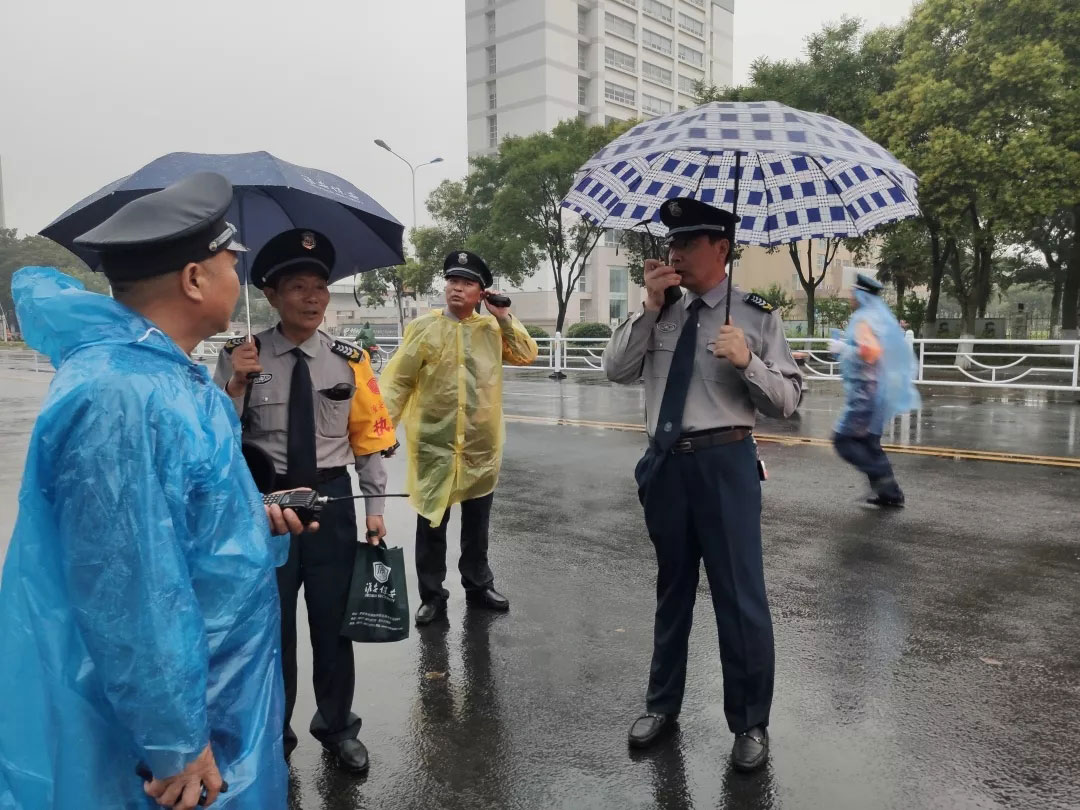 7月6日下午15点,晚会现场暴雨来临,降雨量已超100毫米,雨势持续,并伴有雷暴天气。由于恶劣天气影响,加上持续暴雨,部分道路积水严重,给观众入场带来安全隐患。总公司立即启动灾害天气应急预案,行政部门迅速出动,发放雨衣。人防管理中心组织全体保安队员,在重要路口指挥疏导,采取定人、定岗、定责的预防措施,全体保安队员在暴雨中坚守岗位,认真做好岗位工作。