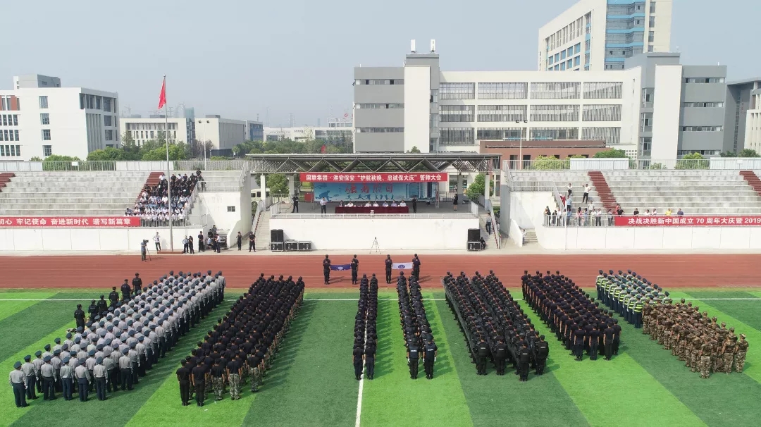 为认真做好央视秋晚和新中国成立70周年大庆安保工作,9月8日上午,淮安市保安服务总公司在淮安市高级职业技术学校体育场隆重举行“护航秋晚、忠诚保大庆”誓师大会暨汇报演练,淮安市公安局治安支队政委颜志龙、保安监管大队、市高职校等领导观摩了科目演练,总公司领导班子和各部门负责人以及员工代表共800余人参加了大会。