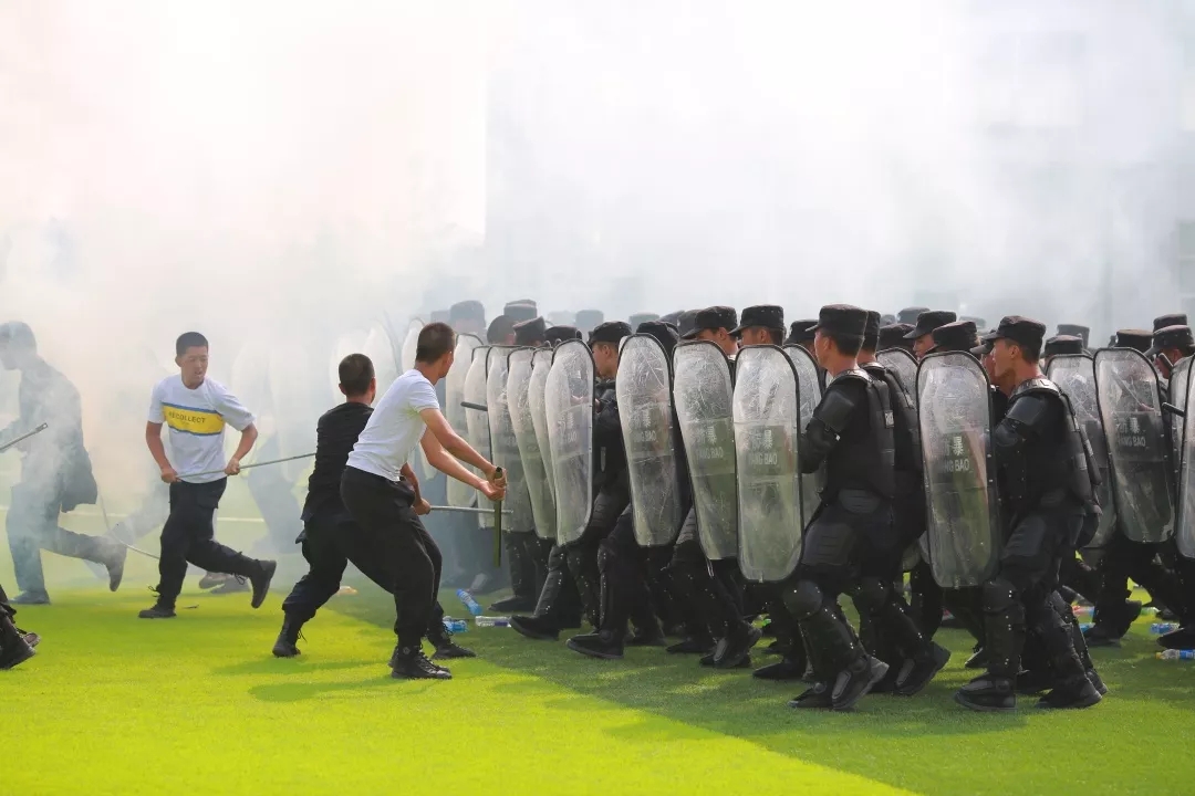 上午9时,汇报演练在升国旗仪式后拉开帷幕,来自总公司人防队伍、押运队伍、高职校安保专业班10个队列方阵,依次进行了分列式展示和交通手势操、擒敌拳、押运枪支反袭击操、高级安保专业女子匕首操、反恐防暴盾牌术、群体性事件模拟现场处置等科目实战演练,整场演练活动紧张有序,参演队员精神振奋、士气高昂、技能娴熟、作风顽强,充分展现了保安队伍纪律严明、团结奋进、敢打必胜的良好形象。