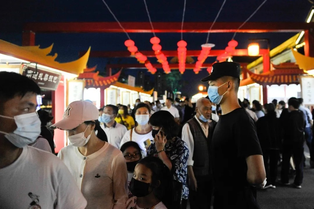 配合公安机关完成里运河文化长廊景区临时区域管控、区域隔离设施设置、在活动入口处对游客进行安检,测温提醒观众扫健康码戴口罩进入;根据景区内人员流量情况,及时进行疏导分流;维护展会现场秩序,同时在里运河两侧安排保安手持救生圈,防止观众落水,及时处置突发事件