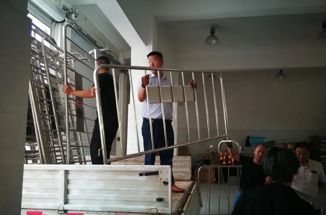 武装守押中心、高级安保专业、培训部等部门组织人员,克服高温、雷雨双重考验,连续加班加点奋战一线,认真做好隔离设施的装卸、运送、摆放和撤回入库工作。
