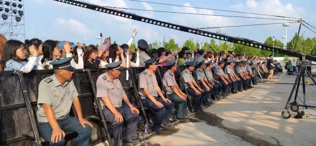为做好音乐节科技化安保工作,总公司前期在现场搭建了智能化安保指挥部,整合活动现场20余个监控视频、100余个周边监控视频接入安保指挥部大屏,保证了活动现场视频监控全覆盖。提前配合公安机关完成活动现场临时区域管控、区域隔离设施设置。在安检口增设了安全检查、人脸识别、人体测温、数据记录“四位一体”的可视化安保系统和高科技装备。