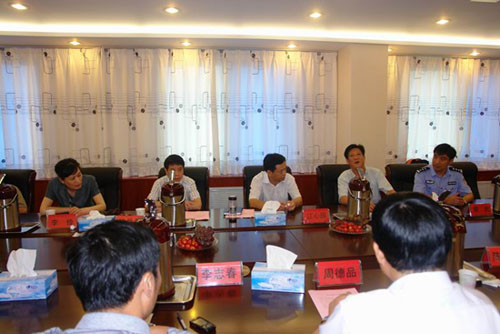 台州市公安局考察团一行,在公安局二楼会议室进行了座谈,公司董事长、总经理荀金庆向客人简要介绍了公司改制情况,并就改制的做法和细节与客人进行了沟通、交流。