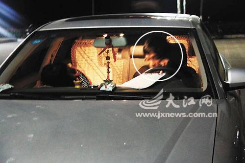昨日傍晚6时20分许,记者来到华东交大北门校区内,只见一辆奥迪A4小车停在大门旁,驾驶位上一名男子边抽烟边打着电话,副驾驶位上的女学生则趴着,遮住了脸。