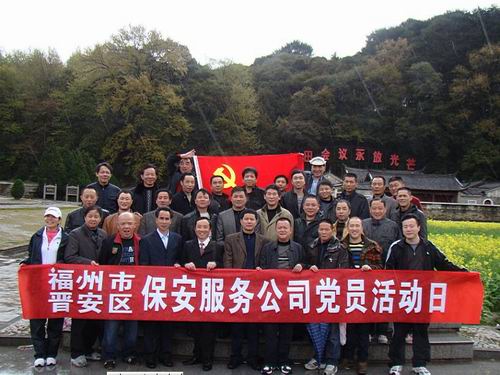 福州公安保安监管工作消息 我市晋安区保安服务公司党支部在开展“争优创先”活动中,高度重视党员队伍接受革命传统和革命思想再教育工作。近日,该公司组织全体党员和入党积极分子33名前往革命圣地--古田会址参观学习,接受革命传统和革命思想再教育,不断提升公司党支部凝聚力和党员、入党积极分子的政治思想水平。对这次参观学习活动,区委政法委副书记、区综治办主任兼公司党支部书记夏冬林同志提出了明确要求,要求每一位党员同志和入党积极分子要通过参观学习来不断提高对党组织的认识水平,并且在参观学习后要结合各自岗位写出一篇心得体会。