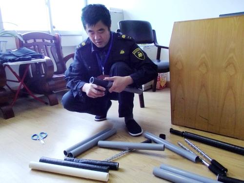 宁波安邦护卫有限公司象山大队经检查部分防弹衣带子失去粘性,狼牙棒外壳出现破损,影响了押运形象和存在安全隐患。鉴于这种情况,大队不等不靠,积极开动脑筋,4月7日,自购了PVC管、电工胶布等材料,队员利用午休时间,分工协作,动手修补了防弹衣15件,制作了狼牙棒套20个,有效降低了公司运行成本,提高了队员爱护装备意识。