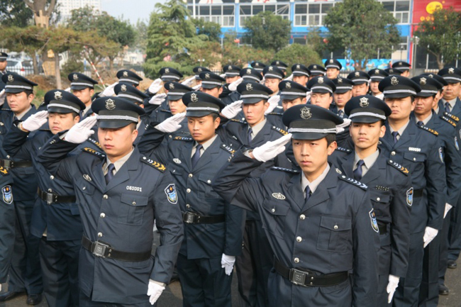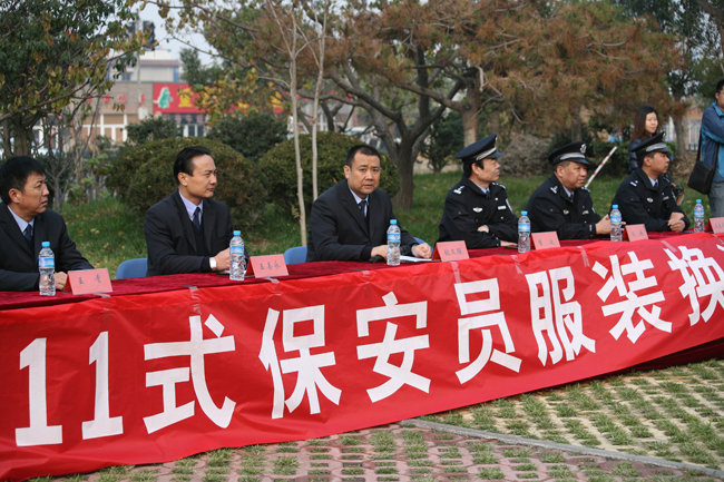 11月22日上午9点30分,公司保安员换新装仪式在龙都广场举行,仪式现场,首批100余名保安员穿上了2011式服装。公司领导及天桥分局治安大队保安管理科领导为保安员授衔。随后,全体身着新式保安制服的保安员进行了队列演练;最后,公司领导强调:在换装后保安队伍将按照公安部要求,加强保安队伍建设,努力建设一支素质过硬、形象良好、服务规范、群众满意的保安队伍,也希望我们全体保安员要以这次换装为契机,进一步增强荣誉感、责任感和使命感,外树形象、内增素质,推动安保工作再上新台阶。在社会治安工作中发挥重要作用。