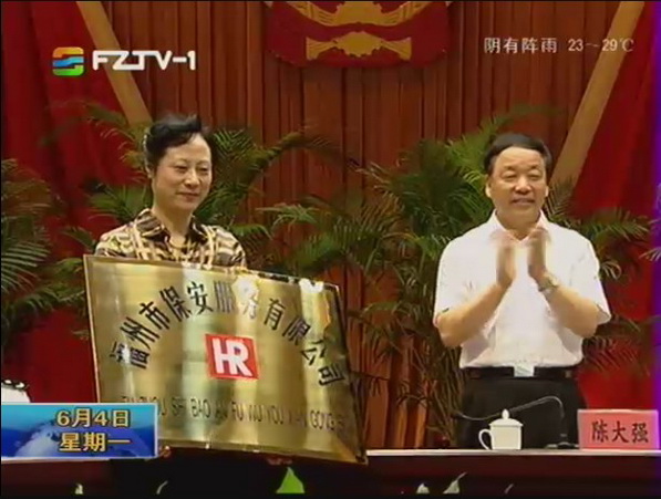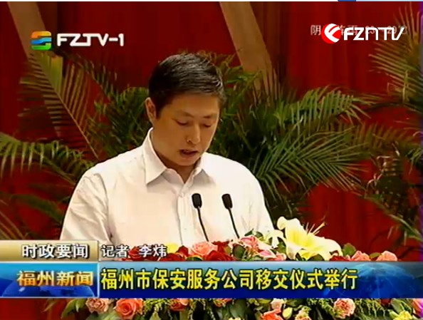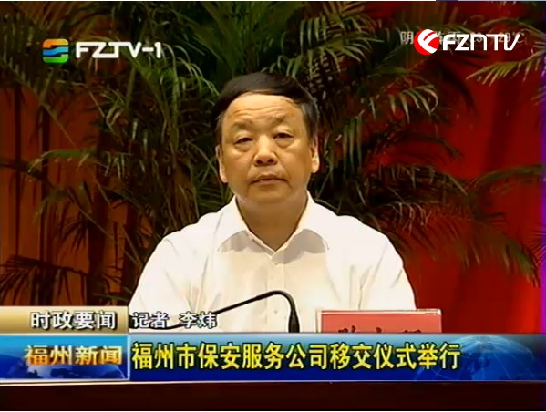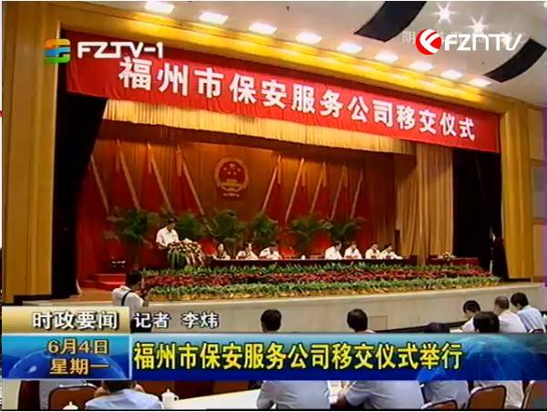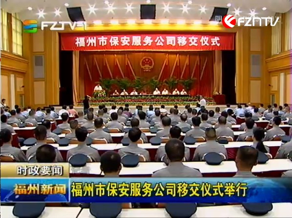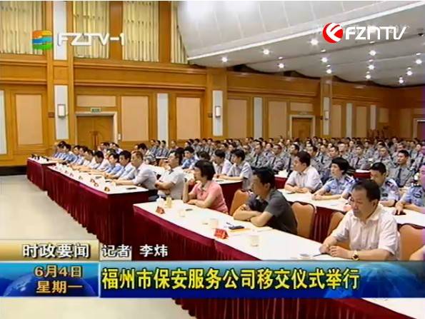 福州市公安局消息 6月4日上午,福州市保安服务公司交接仪式在市委礼堂举行。福州市盈瑞投资有限公司正式承接由公安系统剥离出来的福州市保安服务公司。市委常委、常务副市长陈大强,市委常委、政法委书记陈为民,省公安厅副厅长、市政府副市长、市公安局局长徐凡新,省公安厅治安管理总队政委、省保安协会副会长张德雨,市局党委委员、副局长郑雷声以及市政府相关部门领导出席现场移交仪式。