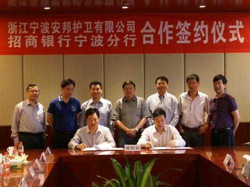 为实现公司“守押一体化”工作目标,推动全市金融守押社会化工作进程,经宁波市公安局党委研究同意,宁波安邦护卫有限公司和宁波市招商银行经多次商洽,就金库守卫服务和金库合作事宜达成协议。5月30日,双方在市招商银行大楼会议室举行合作签约仪式,公司总经理张正逸和市招商银行副行长金伟进联合签署了守库服务合同,市公安局党委委员、副局长王伟标,宁波银监局副局长施先强,经文保支队副支队长王国荣,治安支队政委王中达,招商银行宁波分行行长郑先炳等领导应邀出席。