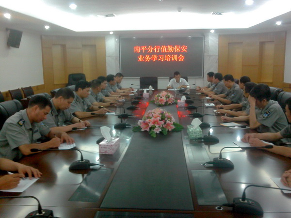 南平市保安服务公司消息(通讯员 鞠爱萍) 27日晚19时,建行南平分行组织派驻岗位执勤保安员学习,建行南平分行安保部总经理吴玉春、保卫科长王跃斌,保安公司分管金融岗点林铭春中队长及18名保安员参加了业务培训会。