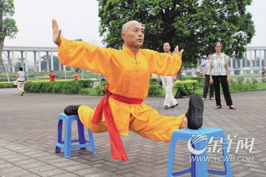 “农民工组合”中的武者张中心来自河南孟州,体魄结实,剃着光头,颇有点少林寺武僧的范儿。张中心告诉记者,自己出生在有着“武术之乡”之称的孟州化工镇,从小就对武术痴迷。与王文正一样,张中心同样从小家境贫寒,早年父亲得了精神病,家里没了顶梁柱,张中心也是小学没毕业便辍学了,兄妹三人都是母亲一人拉扯大。由于父亲精神病发作,出去惹了不少事,遭到了邻居的不解和谩骂,兄妹几个也常被欺负,于是张中心暗下决心,学好武术,保护家人不被欺负。说到这,张中心觉得自己走上习武之路的初衷有些偏颇,“习武之人不可为一己之私,以怨报怨,有违武术之道,所以现在打算免费传授一些武术给大家,当做健身之道。”