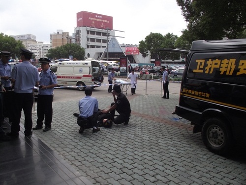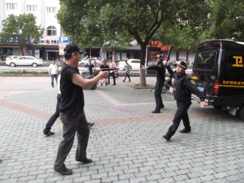 象山县公安局举行了反恐怖应急实战演练,宁波安邦护卫有限公司象山大队参与了配合。演练内容为:当运钞车到达民生银行网点正卸款箱时,突遇两名持枪械恐怖分子冲向运钞车,击毙两名押运员后,用烟雾弹实施爆炸,正要夺款箱而逃时银行两名保安员冲出网点与恐怖分子搏斗。公安机关接警后,110指挥中心立即下达指令,迅速调集武警、巡警、交警、刑警、消防等百余名警力和120急救中心紧急赶赴现场,进行消防灭火和医疗急救,公安机关进行现场勘查,并堵截交通要道,最终擒获恐怖分子,追回款箱。县政府、县公安局有关领导到场观摩了演习。