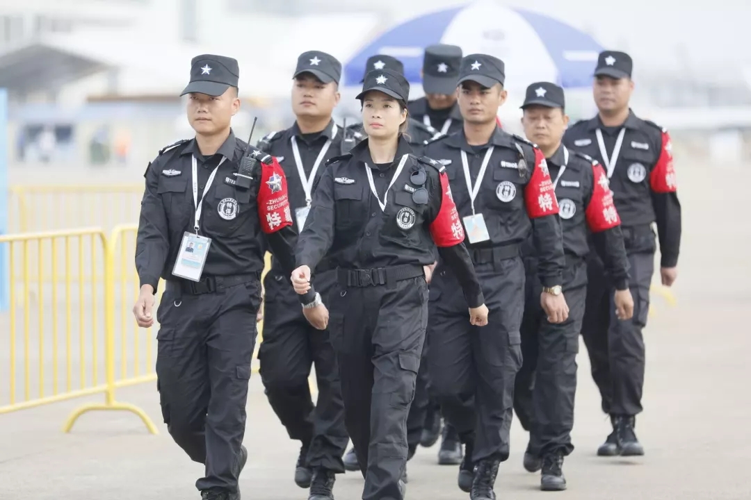 11月6日至11日,珠海保安集团共投入安保力量12000余人次,其中主场馆投入5300余人次,安检及外围投入2000余人次;停车场投入3000余人次,路面交通协管员投入1500余人次。 据统计,11月6日-11日期间,珠海保安集团累计安检入场总人数超过40万人次,累计查获收缴违禁物品25,700余件,现场执勤人员发生好人好事累计49宗。 11日,珠海保安集团终于打赢了这场安保攻坚战,向航展公司、参展商以及全体参与单位及人员交上了一份满意的答卷。 在制订和落实航展安保方案的过程中,保安集团始终服从珠海市公安局的总体部署,根据责任区域的划分和工作任务的确定,逐一与分管的各公安分局进行反复沟通协调、现场勘察、岗位布置、工作细则认定等,确保公安局的专业意见和命令得到逐项落实,确保航展公司的服务需求得到有效响应,做到责任明确、指挥畅通、配合及时、机动灵活,保障航展期间的安保工作顺利有效进行。 为确保“智慧安保”管理目标的实现,根据航展空间布局和现有条件,保安集团开发并投入使用了“珠海保安集团航展安保指挥调度平台”,为本届航展安保提供了保安员移动终端签到、现场视频监控、夜间入侵报警等功能,构建了人技结合的立体安保运营管理体系。 航展期间,通过视频报警,与机场公安分局联动,有效处置了外来人员入侵停机坪偷拍照片的事件。科技安保的应用,提高了现场安保工作的可靠性和快速响应能力,成为公安智慧安防系统的有效补充。 在本届航展中建立了统一的指挥调度中心和多级联动监督机制。每一区域的负责人对直接管理的保安员进行不间断检查监督;各子公司设立稽查队进行巡回督导;集团公司成立应急和督导队,保持对核心区域和重点区域的巡回督察和现场处罚,及时纠正各种执勤违规行为。 指挥部通过指挥中心大屏幕和移动视频执法仪回馈的视频图像监控现场实际情况和变化,扫除监控和指挥盲点,及时调整工作部署,指挥调度应急分队快速进行机动支援,提高整体安防应急管理水平,基本实现全过程动态管理。 特派后勤保障组奔赴航展前线,完成航展车辆调度、住宿饮食等后勤各项保障工作。航展期间,在各大媒体平台刊发图文、视频稿件总计108篇,其中央级媒体25篇,省级媒体21篇,市级媒体62篇;充分利用自媒体舆论矩阵,在珠海保安官方微信、微博开设航展专栏,全天候不间断实时对外宣传报道,并在腾讯、抖音、西瓜视频等进行视频直播,总计推送图文、视频58条;深入一线拍摄航展安保工作照片及视频,累计拍摄照片素材4898张,视频素材298分钟。
