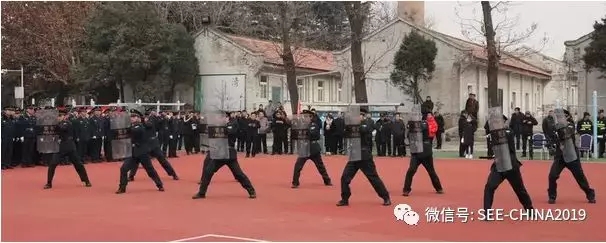 14日,由西安市公安局治安局组织开展的2018年度保安勤务规范化建设考核大会在市人民警察培训学校举行。西安市公安局治安局纪委书记迪宽忍、保安处处长张学林、副处长张乃婷、市警察培训支队支队长张斌及保安处有关人员参加。陕西省公安厅治安局四处杨社会处长、三处陈西平处长和钟晓朝科长,陕西省保安协会牛力会长应邀观摩考核演练 ,并与部分保安企业负责人座谈交流。西安市30余家保安从业单位300余名保安员进行了队列、格斗、擒拿、军体拳等科目汇报表演。