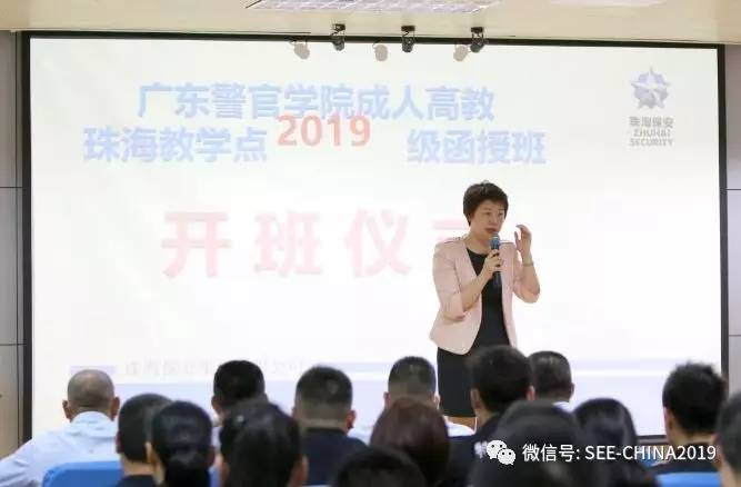 3月23日,广东警官学院成人高等教育珠海教学点2019级新生开班仪式在珠海保安集团举行,来自珠海保安队伍中的80多名学员参加了开班仪式,其中包括2017级37名保安学员,他们将于今年6月完成学业通过考试后取得国家承认的大专及本科学历,这也是珠海保安集团出资培养的第一批大学生保安员。