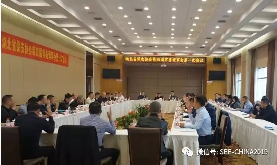 5月7日,湖北省保安协会在黄冈麻城召开第四届常务理事会第一次会议。会议由湖北省保安协会会长王新刚主持,26名常务理事参加会议。湖北省公安厅内保总队总队长刘斌、调研员程西江、主任科员熊涛、楚天都市报党委书记刘冰、黄冈市内保支队政委田军、麻城市公安局副局长何奇志应邀出席会议,省保安协会监事长宋述领、副监事长陈红芳、黄石代表处主任梅军、麻城市一方保安服务有限公司总经理杨志谋和湖北全民保安服务股份有限公司董事长刘谦平列席会议。