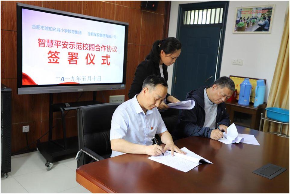 5月10日,合肥保安集团有限公司与合肥市瑶海区琥珀名城小学正式签署“平安校园”合作协议。双方将以琥珀名城小学琥珀名城校区为试点,共同打造“平安校园”示范工程,推广校园安全管理服务新模式。琥珀名城小学拥有在校学生3200余名,近年来办学规模不断扩大,但校园现有技术设备和安保服务分类建设,系统性不足,合力不足,安防基础设施设备较弱。在瑶海区政府、教体局等部门的指导下,保安集团依据琥珀名城小学(琥珀名城校区)自身特点,通过优化人防,增加安保人员与交通引导人员力量,强化管理监督。提升技防使用入侵报警探测、电子巡更、智能分析系统等,实现监控全覆盖,消防在线监测。更以保安集团接处警中心为媒介与110接处警系统、公安局、教体局、卫计委等形成多方联动,大大提高了紧急事件处理的时效性。从多方面为琥珀名城小学(琥珀名城校区)提供“一体化综合智能安保服务”。