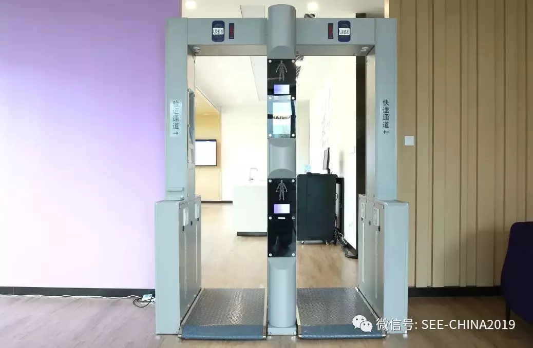 这是一套带快速通道和验证通道、人脸识别身份核验安检系统的安检门,集成现场人脸采集、身份验证、黑名单预警、白名单查询识别等功能为一体。