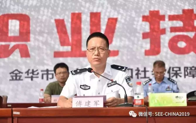 浙江省公安厅治安监督管理总队副总队长朱健辉,金华市公安局党委委员、副局长傅建军,金华市人力资源和社会保障局党组成员邵森寅出席开幕式并讲话。金华市总工会副主席张永积出席开幕式。开幕式上全体保安员进行“保安勇担当·平安迎大庆”集体宣誓。