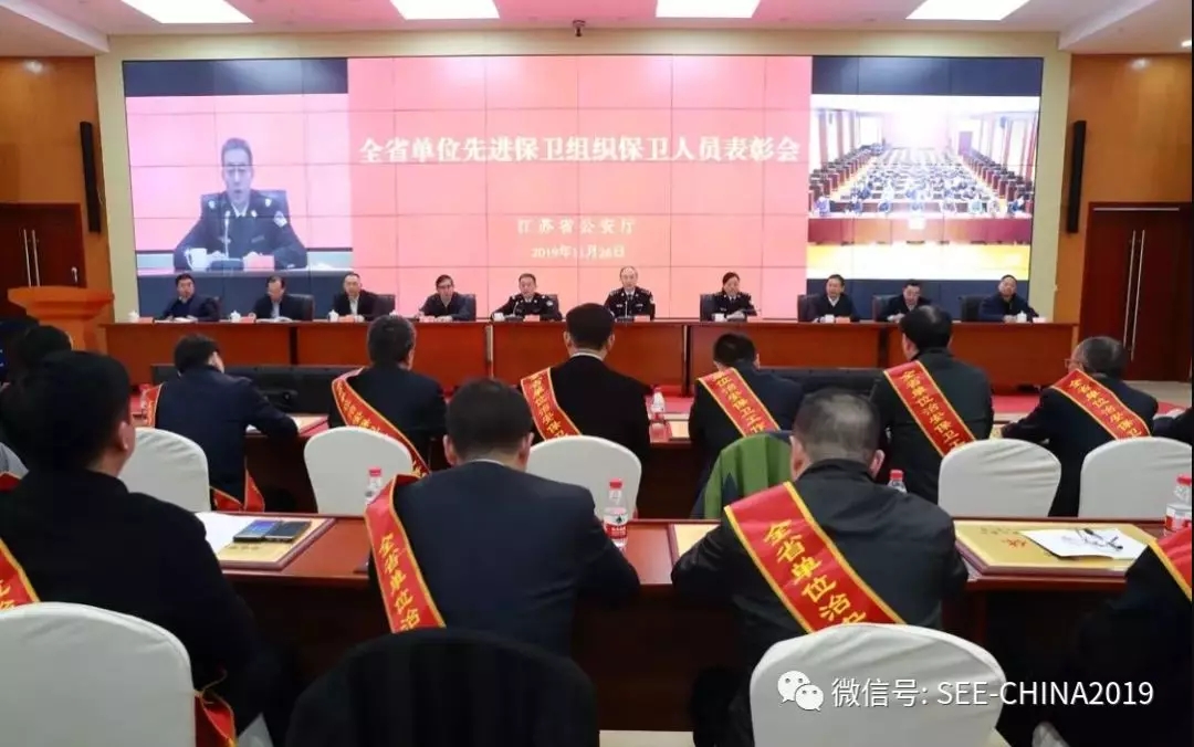 11月26日,江苏省公安厅和省相关行业主管部门共同举行全省单位先进保卫组织保卫人员表彰会,激励全省单位保卫战线忠诚履职、担当作为,营造更加平安稳定的单位内部环境。江苏省副省长、公安厅党委书记、厅长刘旸出席会议并讲话。他强调,要认真学习贯彻党的十九届四中全会精神,按照中央和省委、省政府、公安部部署要求,总结发扬单位安全保卫工作的好经验好做法,勇于创新单位内部安全保卫治理体系,着力提升防风险、保安全、护稳定、促发展的能力水平。
