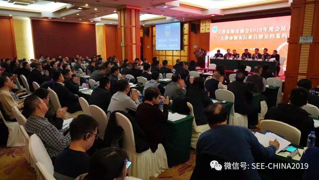 2019年12月26日,天津市保安协会组织召开“天津市保安协会2019年度会员大会暨天津市保安行业自律公约签约仪式”。天津市公安局治安管理总队行业监管支队、法制支队和天津市保安协会主要负责同志出席,市公安局治安管理总队、各分局保安服务业监管工作相关负责同志,全体会员单位及未入会的保安企业负责人,共计180余人参加会议。