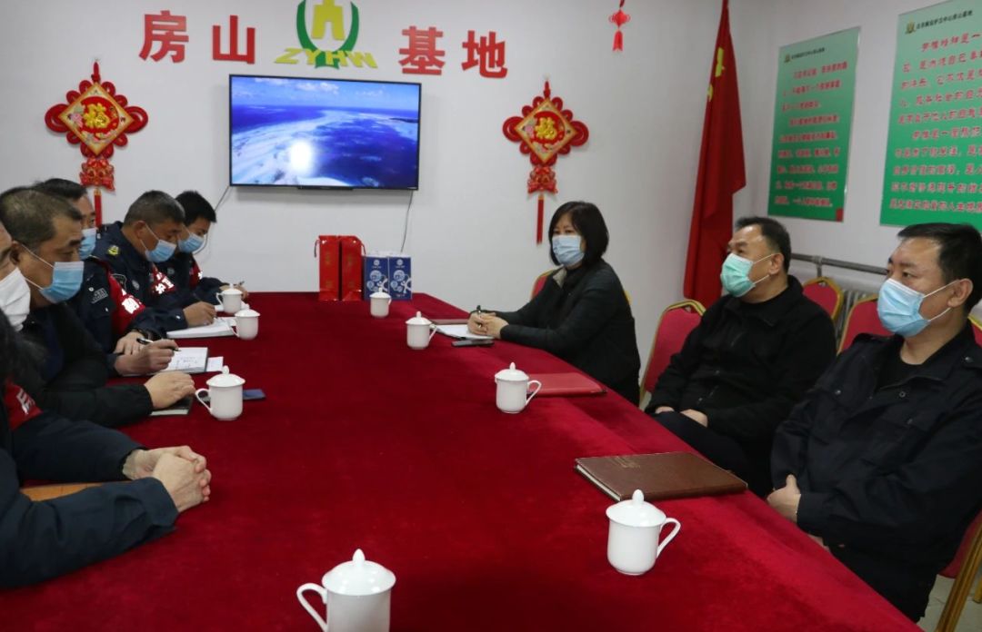在基地会议室,赵树如书记亲切慰问了带病坚守工作岗位的后勤主管任升华,详细询问他的健康状况,细心叮嘱他多注意身体,做到劳逸结合,遇有困难及时向组织汇报。随后,赵书记认真听取了房山基地刘凤军主任关于基地疫情防控、队伍管理、员工人文关怀、日常勤务、交通安全及内部安全等情况的详细汇报,并对房山基地严格落实中心疫情防控工作部署、紧密结合基地实际、细化疫情防控措施、狠抓各项工作安全等工作给予了充分肯定,特别是对刘凤军主任坚持以人为本、在营造浓厚的人文关怀氛围方面采取的各项举措给予了高度评价。针对下一步疫情防控工作,赵树如书记着重强调四点要求:一是高度重视,绝不放松,坚决打赢疫情防控战斗。赵书记指出,当前疫情防控工作已进入关键阶段,基地全体骨干要继续保持高度警惕,加强防控工作措施落实,杜绝出现麻痹思想、侥幸心理。要毫不放松做好返京返岗员工的安全防护工作,全面排查、严防输入,坚决打赢疫情防控阻击战。二是不惧艰险,冲锋在前,发挥党建引领作用。赵书记要求,基地全体党员要充分发挥党员的生力军作用,凸显先进性和模范性,带动广大团员青年积极投入到防控工作中,积极发扬不怕风险、直面困难的精神,冲在前、干在先,当好表率,带领基地全体员工将各项防控措施落到实处。三是加强员工关怀,掌握员工动态,确保队伍思想稳定。赵书记强调,基地各级骨干要多关心关爱员工,关注了解在岗员工思想状态,及时帮助员工解决实际困难,进一步增强非常时期的凝聚力和向心力。要建立信息员机制,加强请示汇报,时刻掌握员工思想动态,做好员工心理疏导,确保队伍思想稳定。四是细化防控措施,堵塞防控漏洞,确保单位内部安全。赵书记强调指出,当前疫情防控形势依然严峻,基地要毫不放松地继续严格落实中心及基地疫情防控工作方案,深化细化防控措施,确保疫情防控实效。要加强防控工作督导检查,及时查找防控薄弱环节,将安全隐患消灭在萌芽状态,确保基地内部安全稳定。