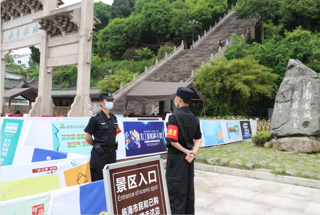 信任源于专业,专业源于专注。台州安邦护卫挑选政治过硬、专业过硬、素质过硬的员工组建专业化的安保队伍,提前策划安保方案,为临海古长城、紫阳街、东湖等景点提供安全巡逻、隐患排查、人员疏导、疫情防控一条龙服务。整齐划一的动作、规范文明的用语、亲切温暖的微笑,安邦安保队伍乍一出现,就吸引了游客的眼光,成为景区最靓的仔。