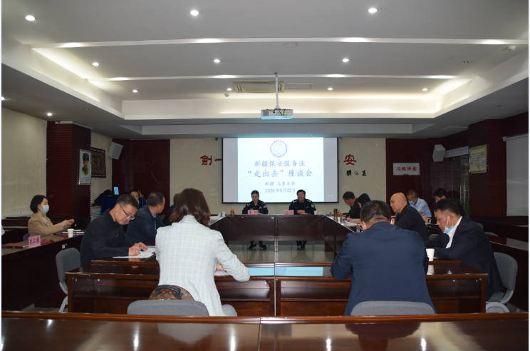 5月22日,新疆维吾尔自治区公安厅治安管理总队、新疆保安协会在新疆天盾安防股份有限公司五楼会议室组织召开了新疆保安服务业“走出去”座谈会,阿克苏恒基武装押运有限公司、乌鲁木齐安保(集团)有限公司、克拉玛依市华旗守押有限责任公司、新疆天盾安防股份有限公司、新疆阿帕奇武装守护押运有限公司、中安保新疆实业有限公司、新疆恒基武装守护押运股份有限公司、新疆协平保安服务有限公司、新疆兵安守押保安服务有限公司、哈密神舟保安守护押运有限公司、喀什疆南保安服务有限责任公司的负责人参加了座谈。