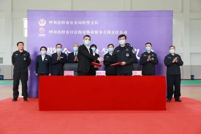 为了进一步加强警企合作,促进公安特警队伍和地方企业协同创新发展。6月3日上午,呼和浩特市公安局特警支队和呼和浩特市日信海清物业服务有限责任公司举行了警企文化合作建设签约仪式。这也是首府特警首次与企业开展合作共建,拓宽了警民共建工作的渠道。
