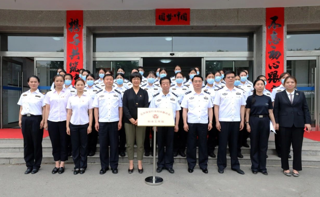 6月11日,北京保安行业妇女联合会在北京市保安服务总公司天安门安检大队驻地现场组织了“妇女工作站”试点单位揭牌仪式。