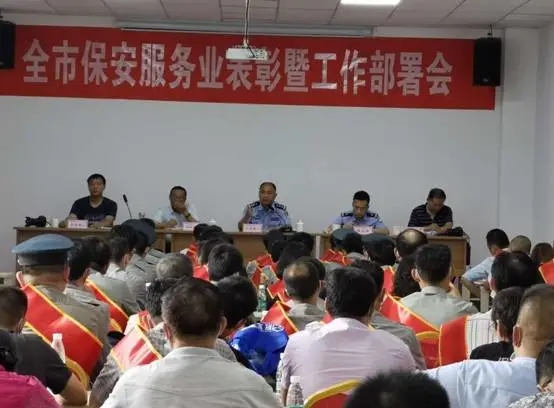近日,马鞍山市公安局保安管理支队、市保安行业协会在金江保安学校召开全市保安管理暨表彰工作会议,表彰奖励2019年表现优秀的保安公司和保安员并部署下半年保安管理工作。保安管理支队全体民警、市保安协会负责人、全市保安从业单位负责人及获奖代表等100余人参加了这次会议。