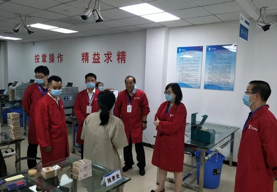 近日,人民银行西安分行货币金银处科长肖睿、西安钞票处理中心科长李志勇等一行数人,在人行商洛中支党委委员、工会主任屈志敏,货币金银科科长孙亚军陪同下,莅临广电运通下属成员企业商洛市金盾押运有限责任公司、商洛市慧金清分服务有限公司就所辖区域现金处理中心工作开展情况进行实地考察与指导。