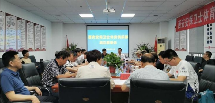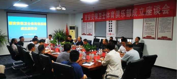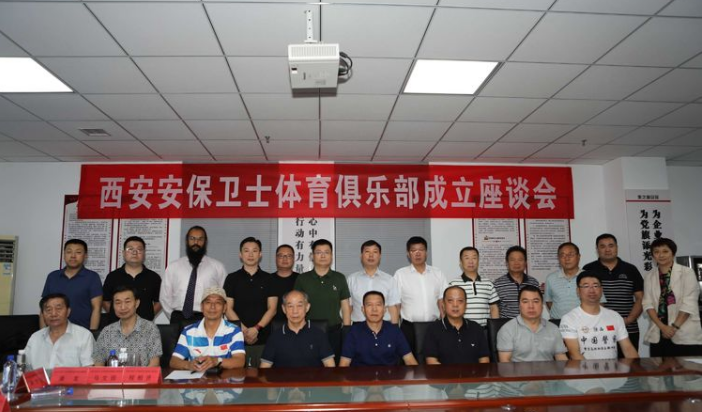 7月11日,西安安保卫士体育俱乐部在陕西秦之盾保安服务有限公司会议室召开了成立座谈会,正式宣告了全国首家保安员体育俱乐部在西安成立。成立座谈会由西安市保安协会副会长、西安安保卫士体育俱乐部法定代表人赵新彪主持。西安市保安协会会长孟宗林、副会长兼监事长朱小波、副会长兼秘书长程保卫、副会长窦智兴、张金龙、李明辉、黄在元、李林安,副秘书长杨存科、王华和西安市体育总会办公室党总支书记、主任范瑞明、西安市公安局反恐支队支队长杨军、中国警察马拉松俱乐部西安跑团团长章凡、原中央警卫团总教练程相贤、北京红森安全技术有限公司(红森安全学院)董事长、院长程传森、中国社会科学院高级顾问、荷兰安防专家罗宾、陕西省武术协会副主席马文国、江泰保险经纪股份有限公司西安分公司市场总监潘龙及有关媒体朋友20余人应邀出席了座谈会。