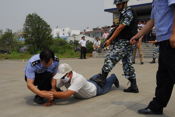 演练主要模拟犯罪分子持刀抢劫钱箱和客户在提取大额现金时进行抢劫等突发情况。参练人员按照紧急处置预案各司其责,迅速有序地开展各项应对处置工作,取得了预期的效果。