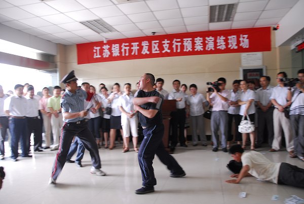 6月27日上午,江苏银行淮安分行会同市公安局、保安公司等部门在江苏银行开发区支行开展防抢劫预案演练,以增强武装押运员应对突发性事件的处置能力以及公安机关快速反应能力。
