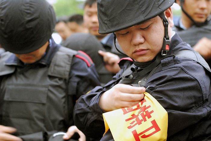 2010年5月5日早晨6时许,全副武装的校园特卫人员整装待发。自当日起,江苏省淮安市首批46名配备钢盔、防刺服、防割手套、防暴胶棒、灭火枪、催泪器等防护装备的专职校园特卫人员开始进驻市直23所中小学和幼儿园,守护校园平安。这些人员都是从全市保安队伍中精选出来的骨干,年龄在35岁以下,大都有部队服役的经历,身体素质和政治素质较好,且受过专业训练。